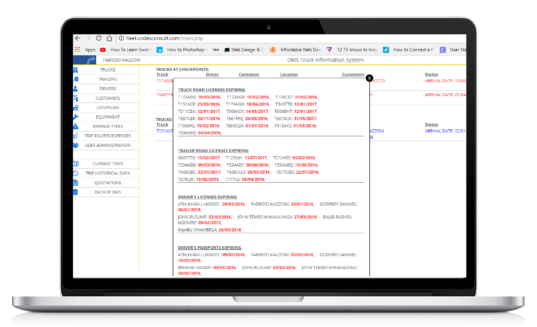 - Store driver information including expiry of passport and driving licenses
